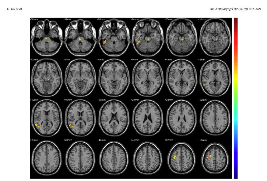 结果:几乎所有患者在三个月的治疗后,耳鸣烦躁度均减轻。耳鸣残疾度量化表与视觉模拟评分表均表明耳鸣严重度降低。rs-fMRI功能性核磁成像结果显示受试者右中额叶脑回和右颞上回的ReHo值显著降低,表明耳鸣程度显著减弱。